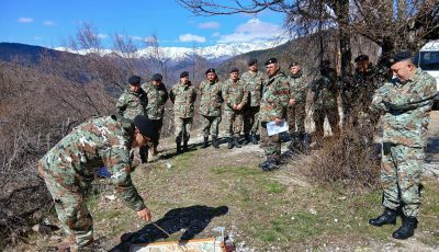 Началникот на Генералштабот на Армијата, генерал-мајор Сашко Лафчиски, во присуство на командантот на Командата за операции, бригаден генерал Мирче Ѓоргоски, командантот на 1.пбр, бригаден генерал Дејан Чиплаковски и команданти на…