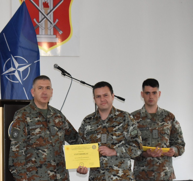 По завршувањето на курсевите на слушателите и стипендираниот студент им беа поделени сертификати од страна на заменикот на командантот на КОД полковникот Дарко Стојкоски каде што им посака успех во нивната понатамошна работа како и имплементирање на ново стекнатите знаења во нивните единици, додека пак на стипендираниот студент му посочи дека со овој процес на обука и запознавање со војничките вредности ќе има уште поголем стимул за својата кариера да ја гради во единиците на Армијата.