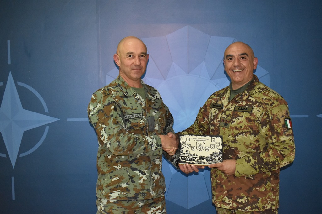 На средбата се разговараше за тековната активност со припадниците од ВС на Италија кои реализираат заедничка обука и вежби со припадниците од 1.пбр на АП ,, Криволак“ , а беше нагласена и потребата за продолжување на успешната соработка во наредниот период.