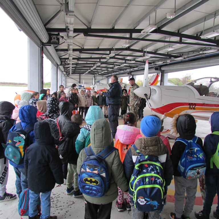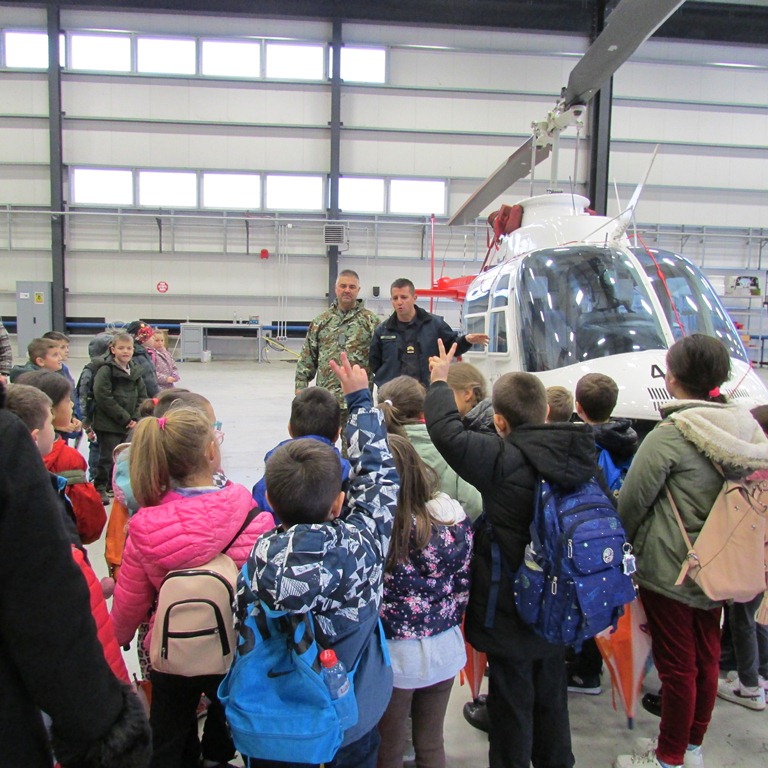 Најатрактивниот дел од посетата беше разгледувањето на воздухопловите, каде што децата имаа прилика да ги видат одблиску и да добијат едноставни, но прецизни објаснувања за нивната функција и употреба.