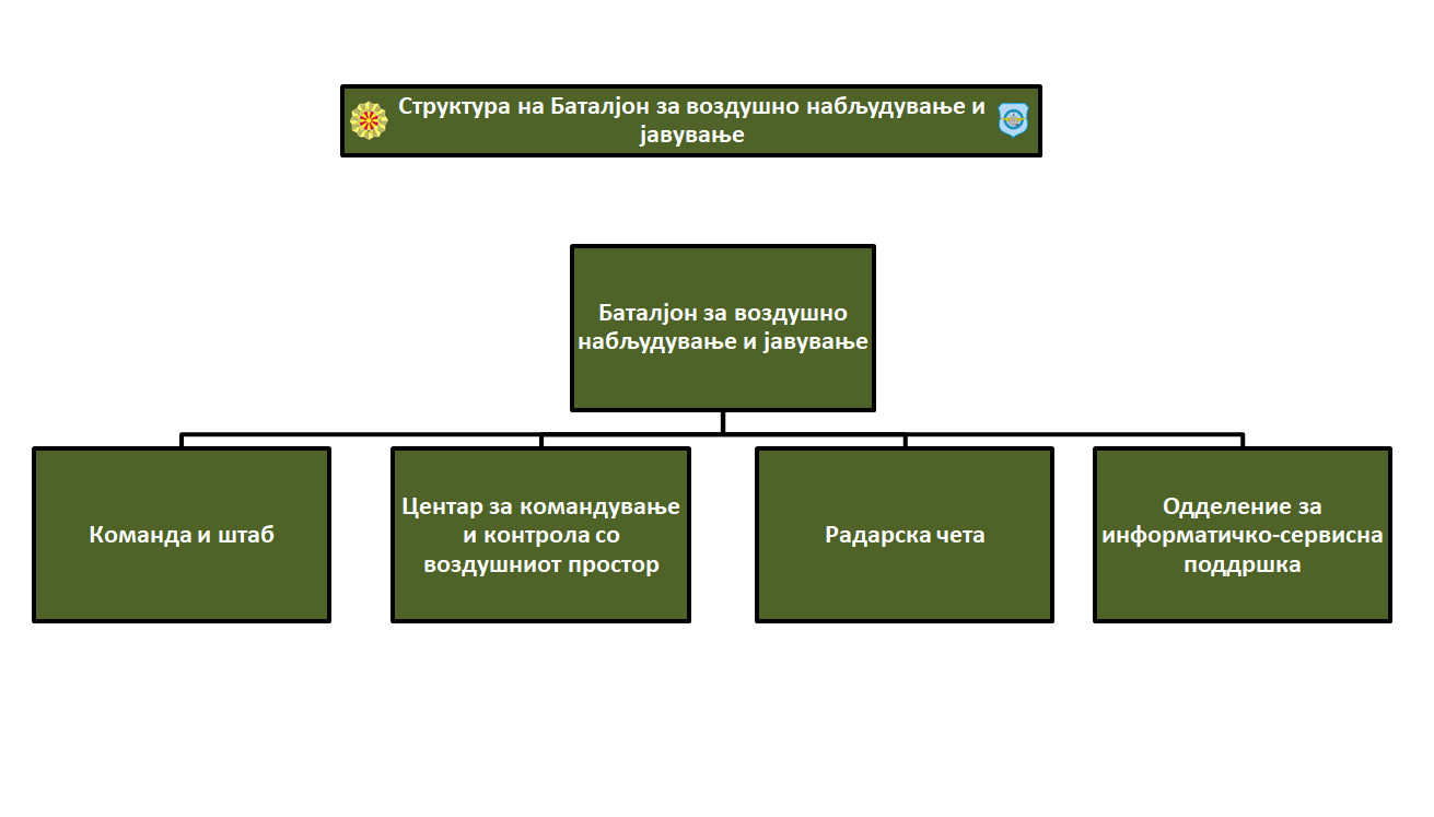 Воздушно набљудување, откривање, идентификација и следење на цели во воздушниот простор на Република Северна Македонија. Генерирање на реално времена слика за ситуацијата во воздушниот простор над државата, дистрибуција до заинтересираните корисници и размена на истата со соседни и НАТО центри за воздушно набљдување и цивилни воздухопловни структури. Рано предупредување за можни и реални опасности од воздух.