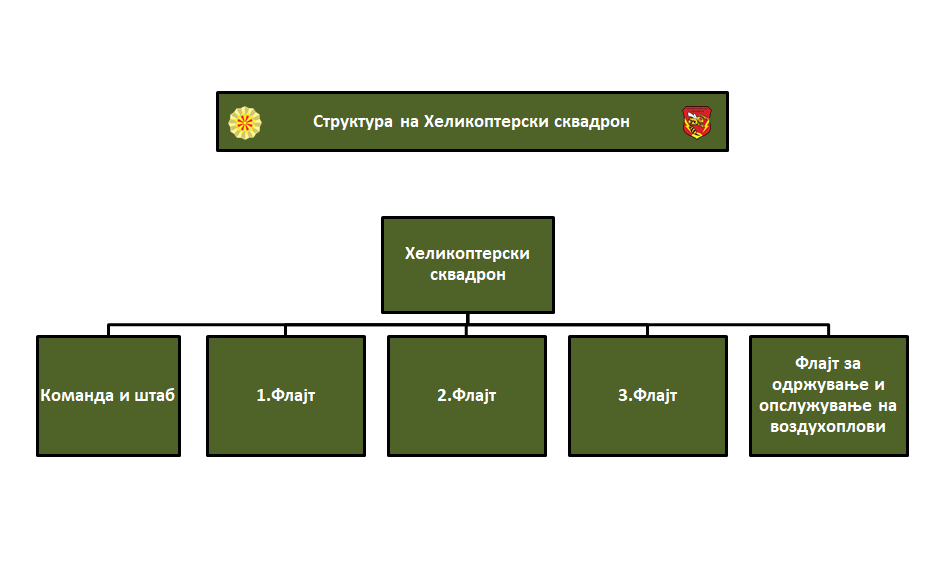 - Со одлуката на претседателот на Република Македонија, Македонското Воено воздухопловство и противвоздушна одбрана беше формирано на 10-тиаприл 1992 година. Во состав на ВВ и ПВО беше транспортната хеликоптерска ескадрила, чиј наследник е денешниот хеликоптерски сквадрон.